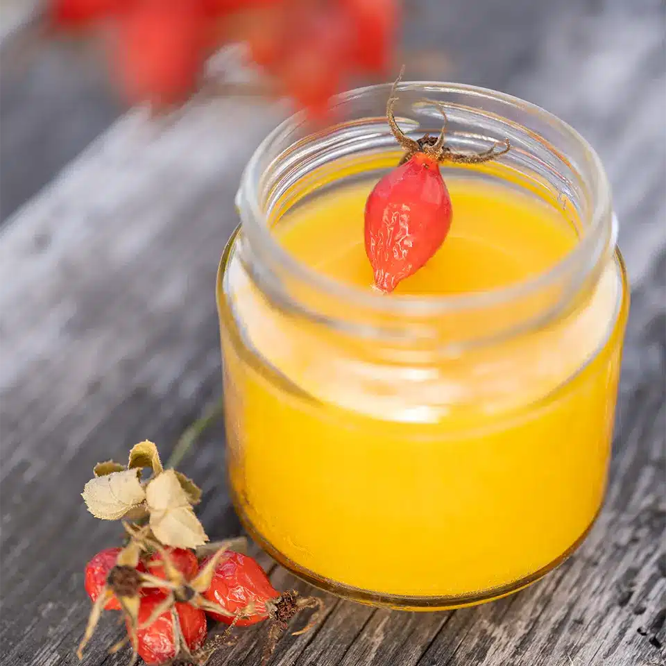 Zutaten für die Hagebuttensalbe: